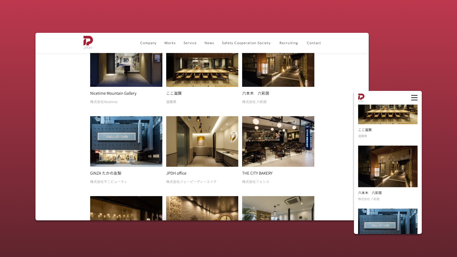 本リニューアルでは、ミニマルなデザインシステムを導入し、情報構造と導線を再設計。余白やタイポグラフィを精査し、施工実績や写真が主役となる構成を実現した。結果として、機能性と美観を両立した現代的なWeb体験を構築し、JPDHの専門性と信頼感を的確に伝えるプラットフォームを確立した。